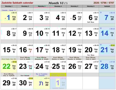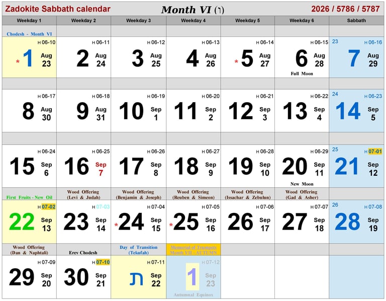 * Dates of Biblical History in Month VI