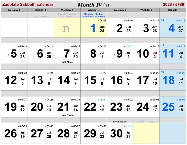 * Dates of Biblical History in Month IV